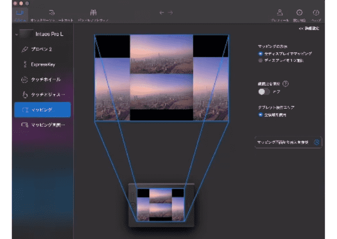 このペンタブレットの四角いエリアに4枚を割り当てていると言う感じです