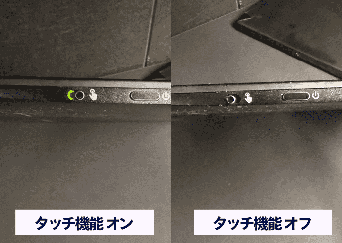 本体の横にボタンがあり、タッチ機能のオン・オフをすることができます