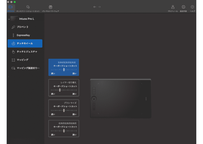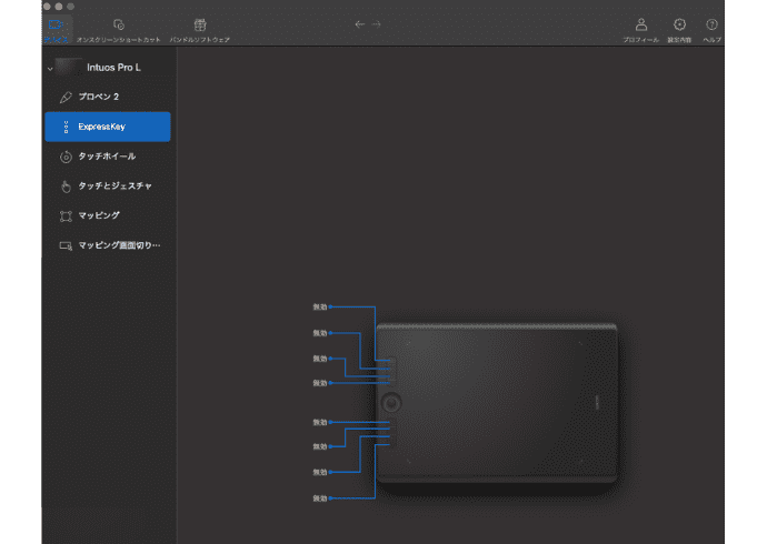 ワコムのドライバの画面はこんな感じです