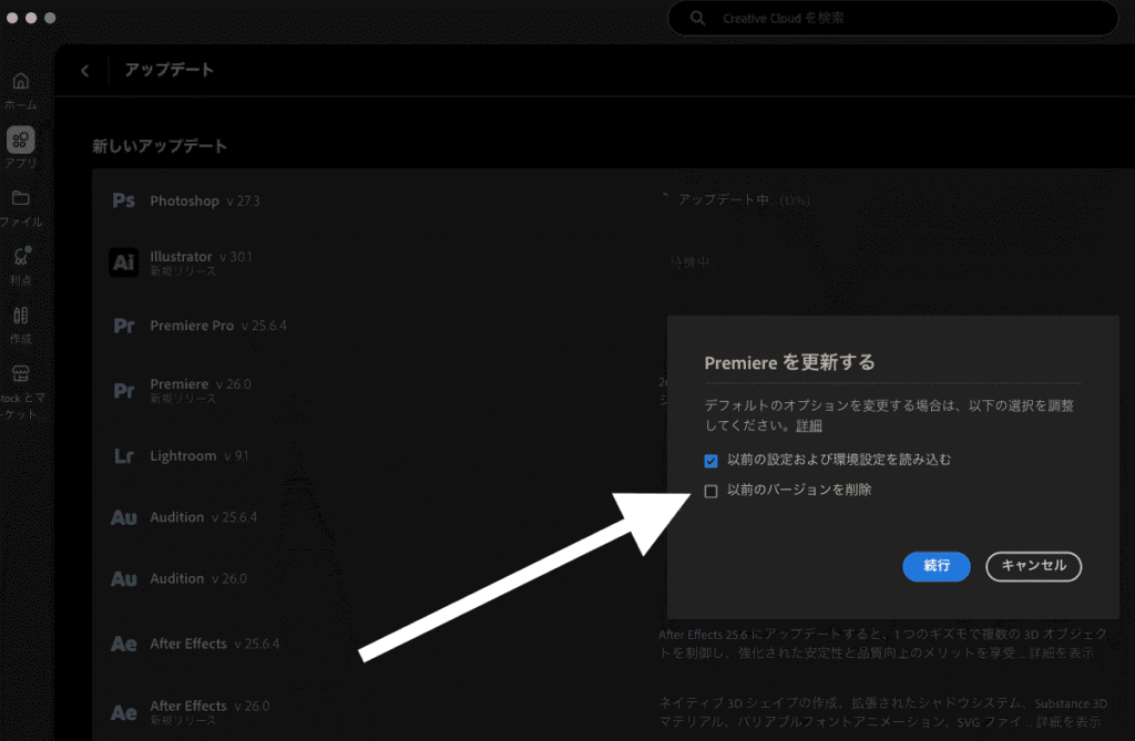 CreativeCloudでアップデートするときに必要な操作