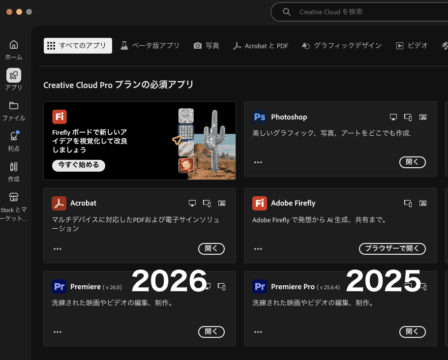 Premiere Proの新しいバージョン2026を試したいけど、