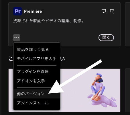 CreativeCloudアプリから、Premiere Proを選択