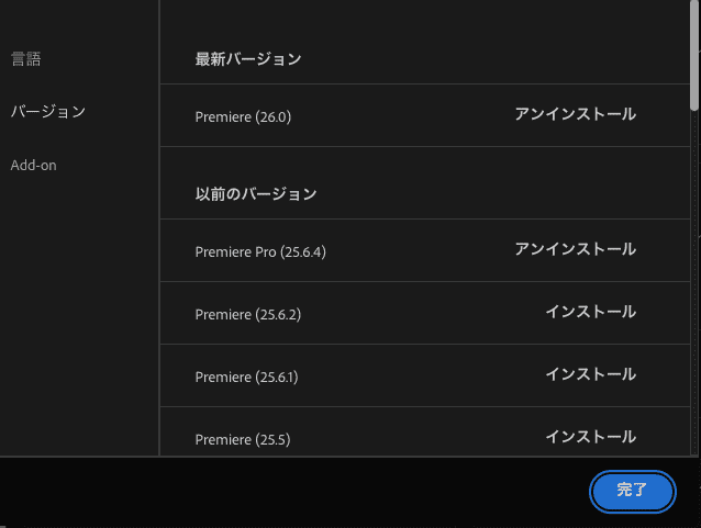 Premiere Pro2025を使っていた(確か25.4くらいだった)