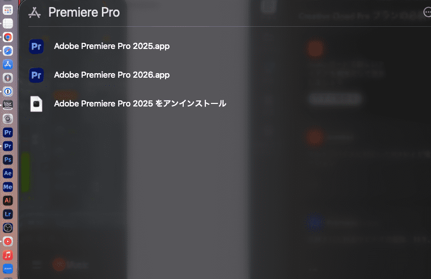 Spotlight検索でPremiere Proと入れると、このように表示されます