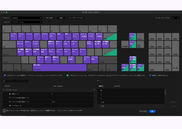 注意:Premiereのショートカットをデフォルトから自分の使いやすいように大幅に変更しています