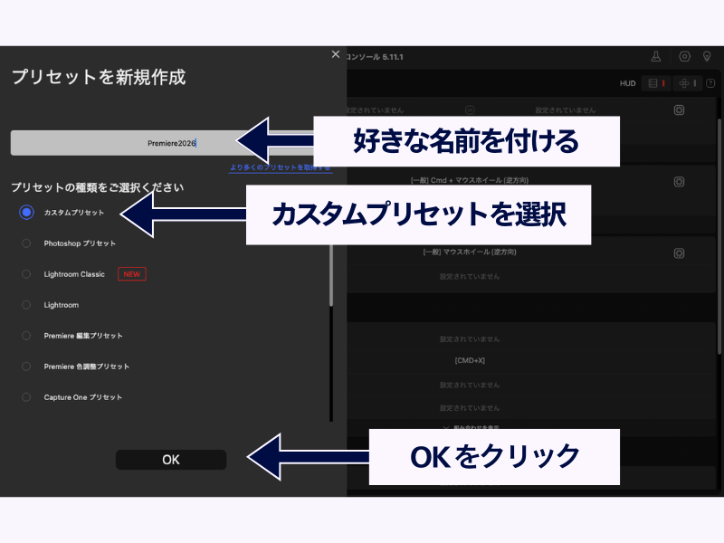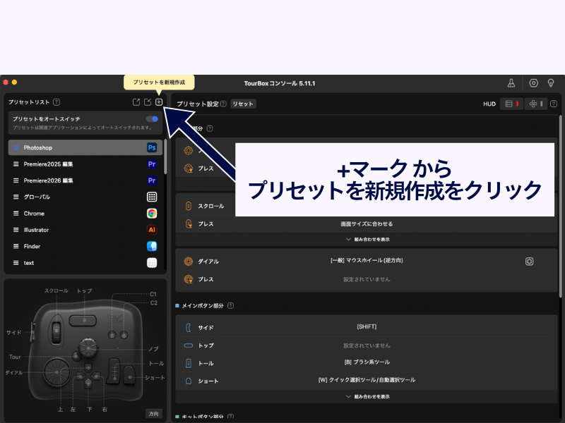 TourBoxコンソールでPremiereの独自プリセットを作成する