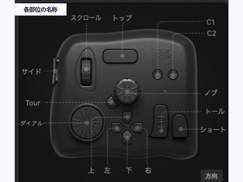 ダイアルやノブ、スクロール、Tourは特にTourBoxに特徴のあるボタンだと思います!